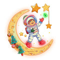 Astronauts on a golden Christmas-decorated moon: happy stargazing holiday miracle neon signs