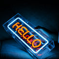 "HELLO" neon sign for bar,table standing glass neon tube sign box
