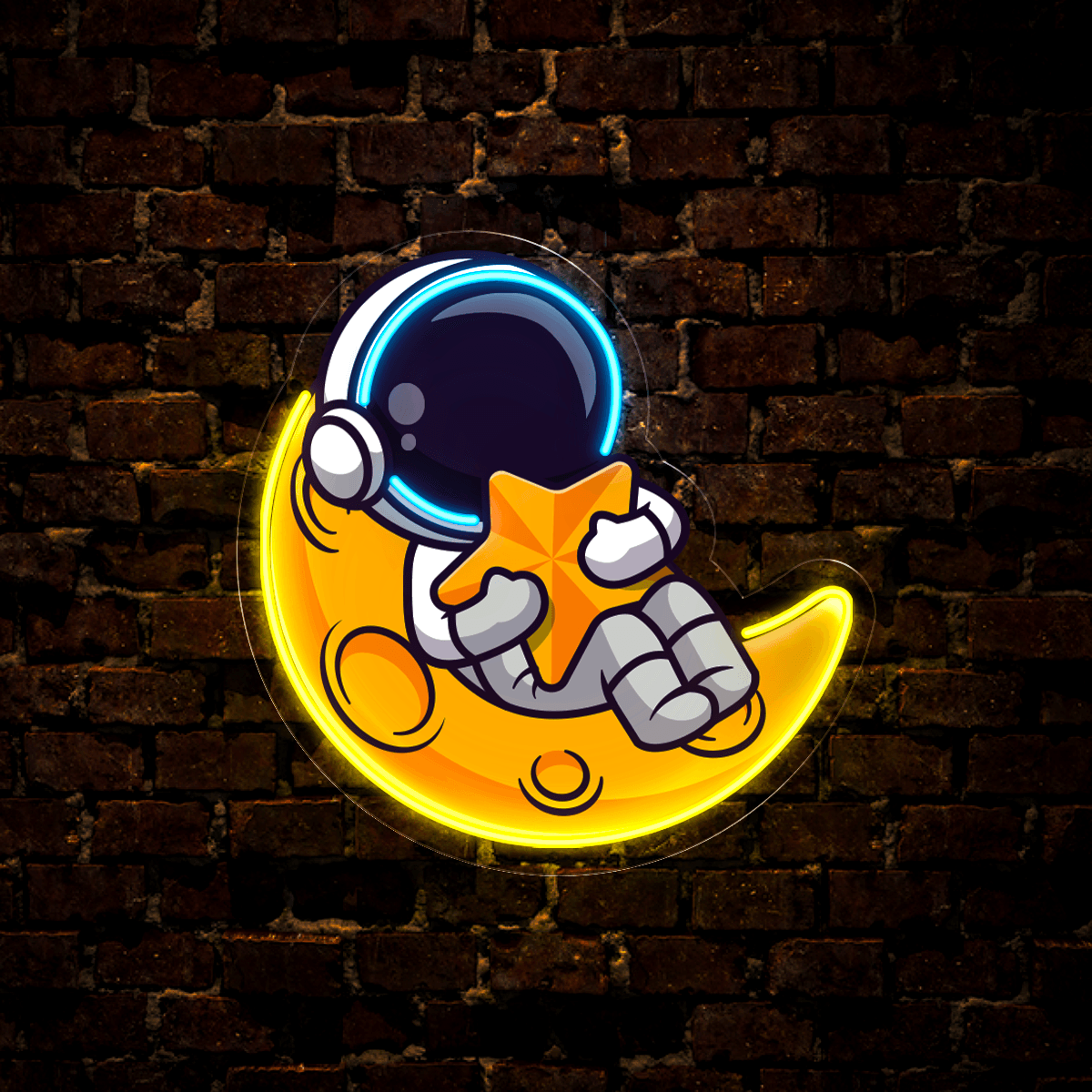 Cute Astronaut Lay On Moon Cartoon Artwork Led Neon Sign