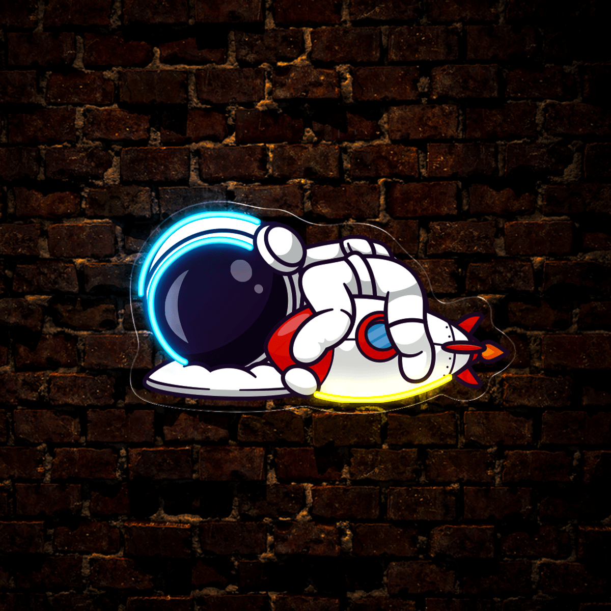 Cute Astronaut Sleeping With Rocket Artwork Led Neon Sign
