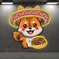 Cute Puppy Neon signs Lights - LED Lights, Head with Swimming Ring and Hand with Pizza, Funny Home Decoration, Perfect Party Vibe