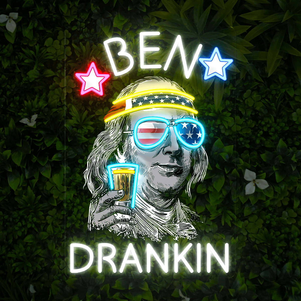 Funny 4th Of July Ben Dranklin Artwork Led Neon Sign