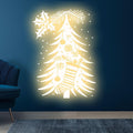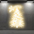 Glowing Gold Christmas Tree Decorations - Hang gold stockings and lanterns for a cozy holiday atmosphere neon signs