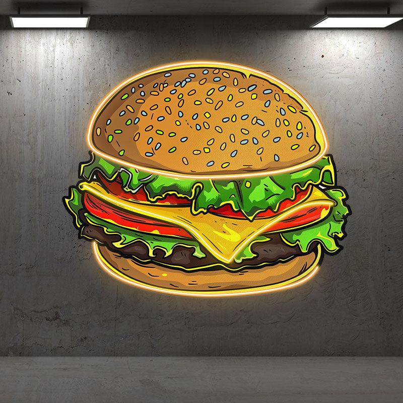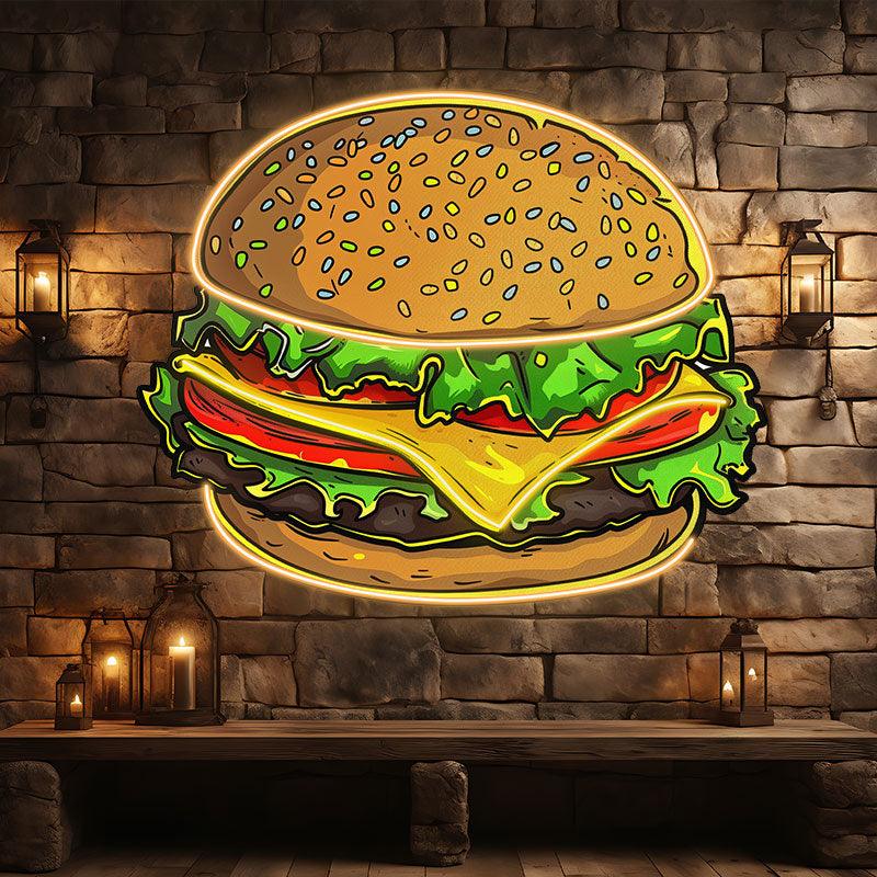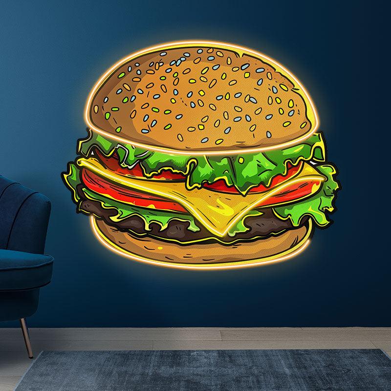 Golden Burger LED Neon signs Lights - Vegetable & Meat Sandwich Creative Decoration Lights | Home, Restaurant, Party Favors