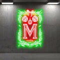 Merry Christmas Poker Shape Chart neon signs - Big M letter, hanging red lanterns, light up the holiday spirit!