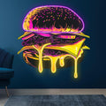 Sandwich Steak Vegetable Big Burger Neon - LED Light Fixture, Sprinkled Sesame Seeds, Flowing Spiced Juice, Purple Strip Light, Creative Home Decor, custom neon signs, custom neon sign Christmas gifts