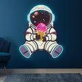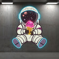 Spaceman Neon signs Lights - LED Lighting, sitting hand holding ice cream, helmet starry night design, creative home decor, perfect gifts