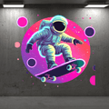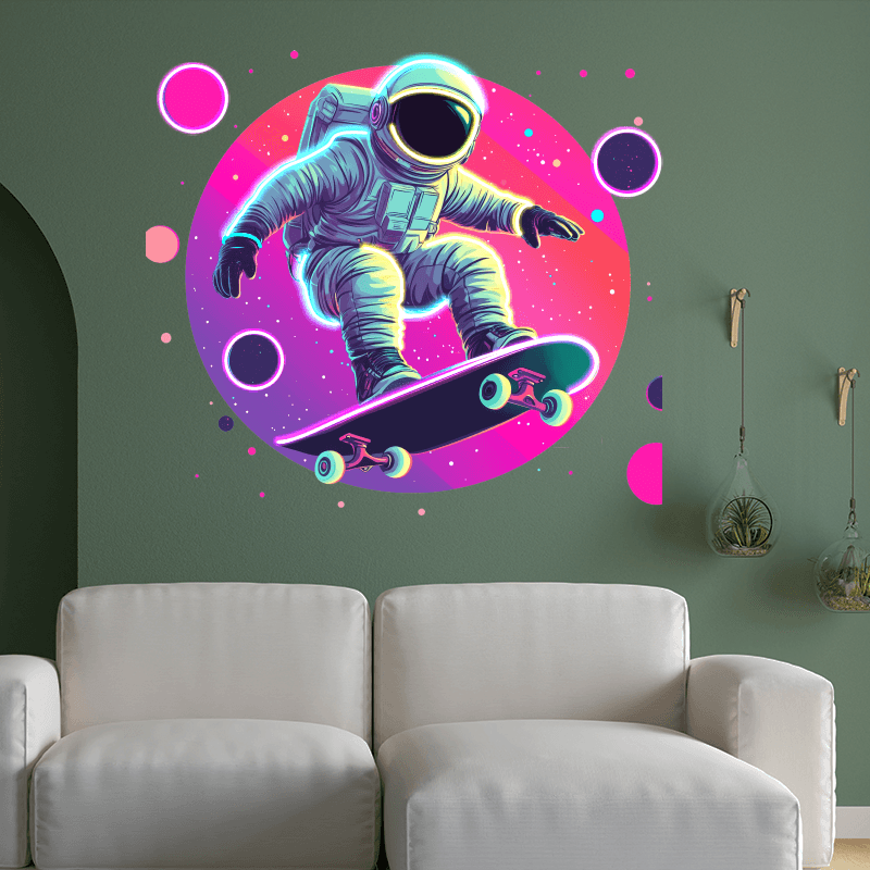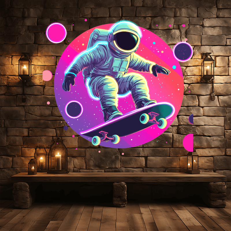 Spaceman Skateboard Jumping LED Neon signs Light - Round Space Background Decoration Light | Creative Home, Party, Gifts