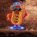 Stylish hot dogs:neon signs wear hats, shoes, and enjoy nodding to cute moments