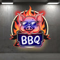 Wild Hog Barbecue Feast: neon signs A Tasty Time Under the Circular Lights